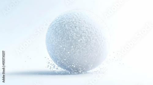 3D Flying Snowball Covered in Sparkling Frost Isolated on White Background � Perfect for Winter Sports and Outdoor Activity Promotions