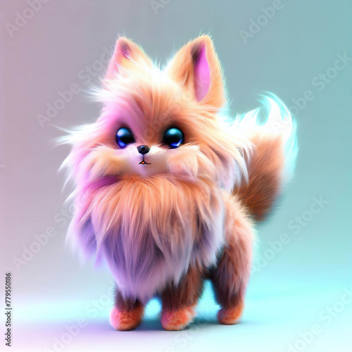 3D furry forest animal with beautiful colors and white background. with Generative AI technology
