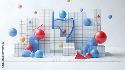 3D Geometric Abstract Calendar Design: Modern Structure with Intersecting Lines & Shapes on Isolated White Background