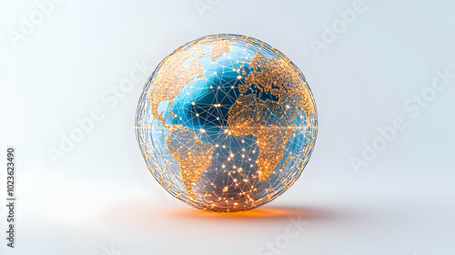 3D Globe with Business Connections Concept - Vector Image of Globe and Connecting Lines for International Business Deals on White Background, Perfect for Infographics and Global Market Interaction