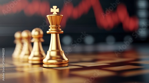 3D Golden Chess Pieces on Financial Board with Rising Trend and High Fidelity Visualization