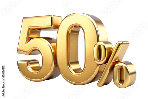 3d golden fifty percent 50 isolated on white background PNG. GENERATIVE AI