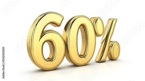 3D Golden Figure "60%" Isolated on White Background: Perfect for Design and Presentation Needs
