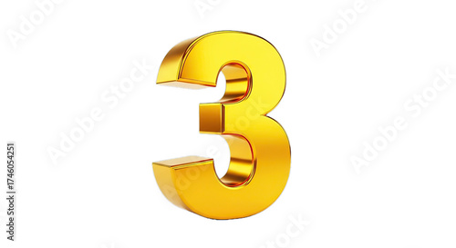 3D golden number 3 metal icon or symbol for business, finance, and currency like a coin or dollar sign