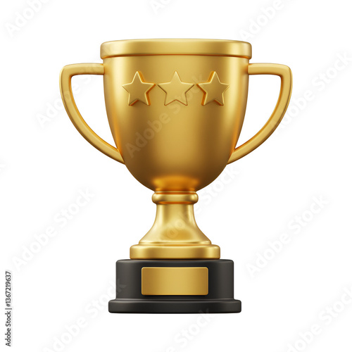 3D Golden Trophy with Review Stars - Five Star Review Design Trophy