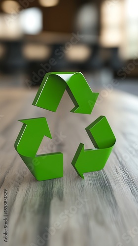 3D Green Recycling Symbol on Textured Wooden Surface eco friendly sustainability photo