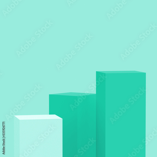 3d green turquoise pastel cubes square podium set minimal studio background. Abstract 3d geometric shape object illustration render. Display for cosmetic perfume fashion and summer product.