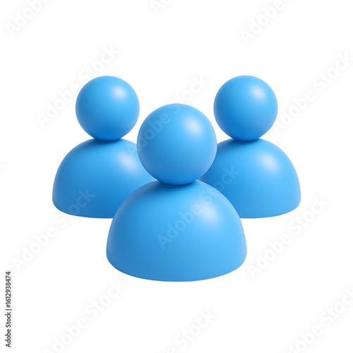 3D group icon, three blue user figures for community and teamwork, isolated on transparent background