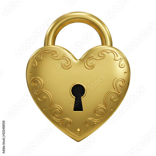 3D Heart-Shaped Love Lock in Shiny Metallic Gold with Intricate Engravings Cutout
