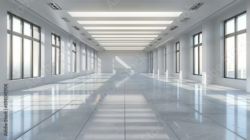 3D high-resolution rendering of a blank business hall, empty office interior,
