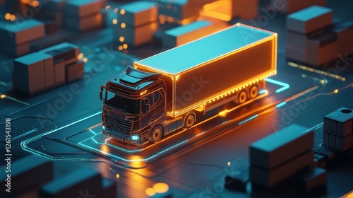 3D hologram of delivery network, high-tech e-commerce logistics visualization.