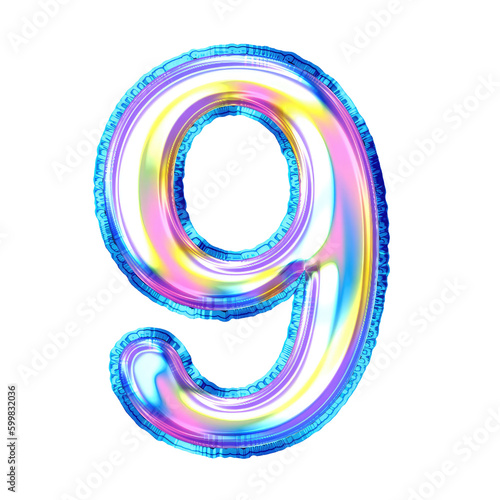 3D Holographic Balloon numbers. This is a part of a set which also includes uppercase and lowercase letters, punctuation marks and symbols