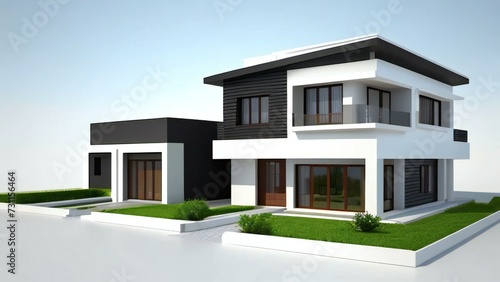 3d house model rendering on white background, Clean and precise 3D illustration modern cozy house. Concept for real estate or property.