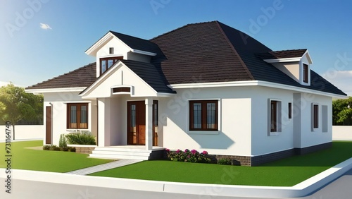 3d house model rendering on white background, Clean and precise 3D illustration modern cozy house. Concept for real estate or property.
