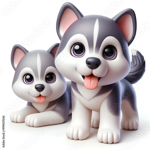 3D Husky puppy - vector on white background