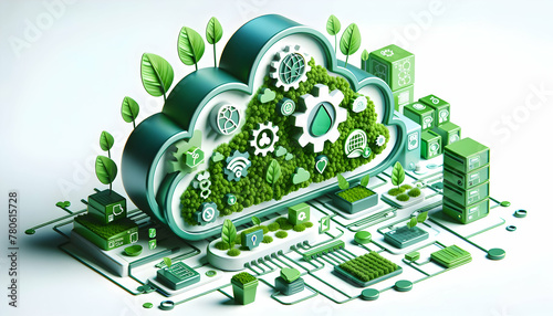 3D Icon Green Tech Cloud: Embracing Innovative and Eco-Friendly Cloud Computing with Zero Carbon Concept, Isolated on White Background