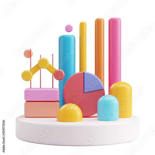 3D icon of a colorful digital marketing chart, white isolated background for clipping