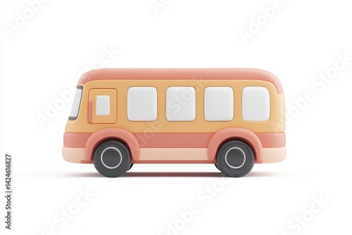 3D icon of a pastel-colored school bus with soft rounded shapes in yellow, pink, and blue tones. Minimal design perfect for kid-friendly visuals, apps, or educational content.