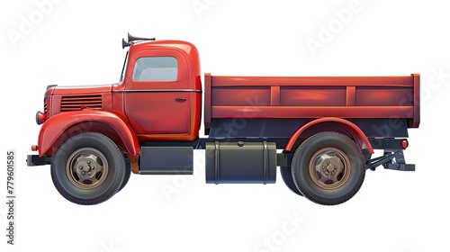 3D icon of a red classic car, an old front engine truck for transportation, isolated on a white background