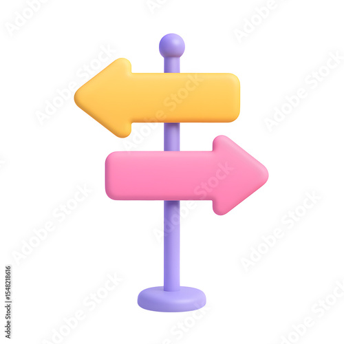 3D icon of colorful directional arrows on pole isolated on transparent background