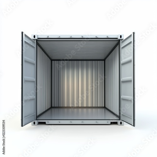3D icon open metal container for industrial storage, isolated on a white background