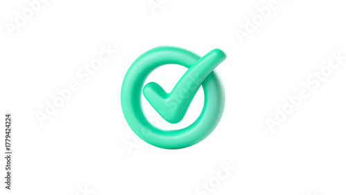 3d icon png, a bright green, 3d checkmark inside a circular border, symbolizing confirmation or completion, isolated on transparent background