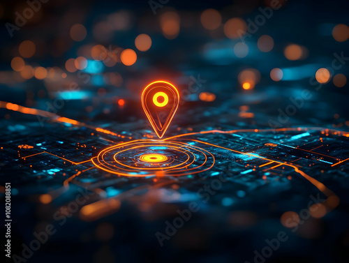 3D Illustration - Location Pin on Circuit Board