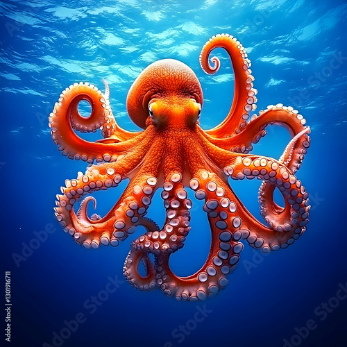 3D Illustration - Majestic Octopus in Deep Blue Ocean