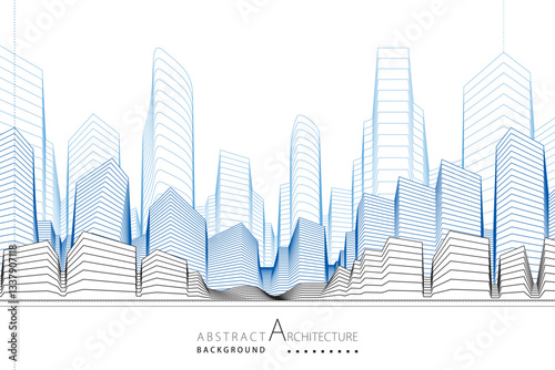 3D illustration featuring an abstract and imaginative line drawing of modern urban architecture design.
