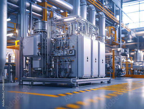 3D Illustration Industrial Plant Machinery Technology Equipment Factory