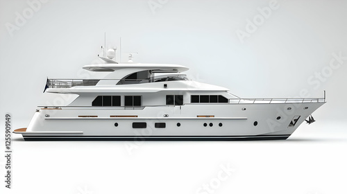 3D Illustration Luxury Yacht Ship, Sea Transportation Boat, Vessel, Cruise, Ocean, Travel, White Background