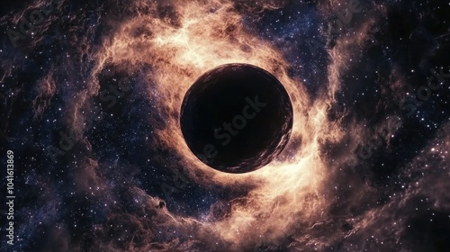 3D illustration of a black hole absorbing light in deep space featuring a realistic science fiction art style in 5K resolution