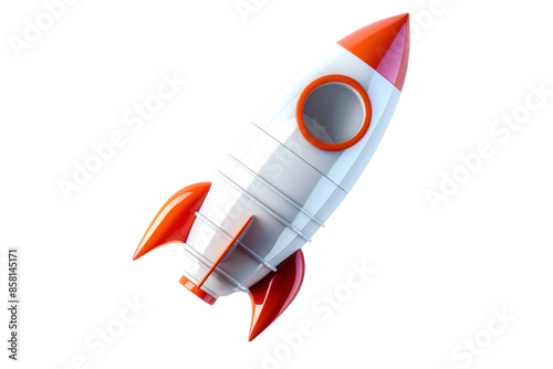 3D illustration of a colorful rocket in white and orange, isolated on a transparent background, for space exploration and technology concepts.