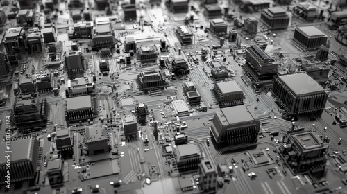 3D illustration of a digital circuit board abstract design, representing advanced technology, data processing, and futuristic electronic networks