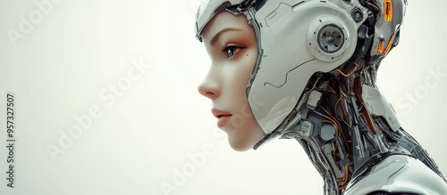 3D illustration of a female android against a white backdrop