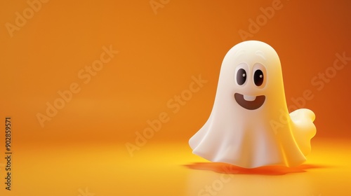 3d illustration of a ghost with cartoon style face on orange background