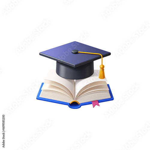 3D illustration of a graduation cap with diploma, symbolizing academic achievement, on a white background