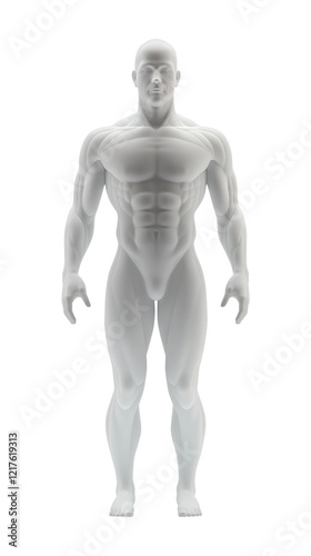 3d illustration of a muscular man for anatomy, front view, isolated against a transparent background