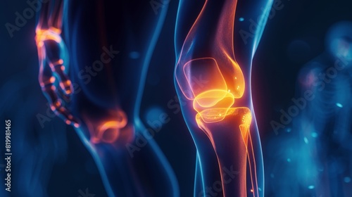 3D illustration of a painful knee representing knee pain in a medical context. Concept Medical Illustrations, Knee Anatomy, Pain Management, 3D Rendering, Health Education