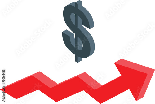3d illustration of a red arrow going up with a big dollar sign, depicting a growing economy and financial success