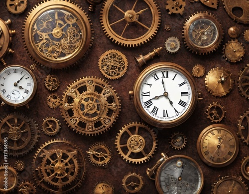 3d illustration of a Steampunk Background. Contains misc metal gadgets, gears and clocks plus a bit of steam. Ready for your photo-manipulations or 3D renders. Ai generated image