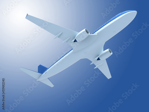 3d illustration of airplane in flying in sky.