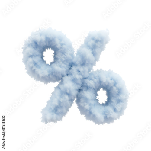 3D Illustration of Blue Sky Cloud Percentage Sign on Transparent Background