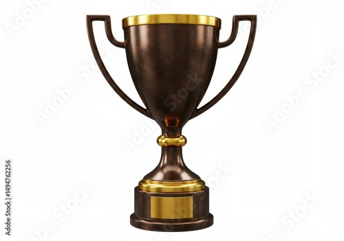3D Illustration of Bronze trophy with gold accents isolated on white background close up