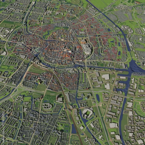 3D illustration of city and urban in Groningen Netherlands