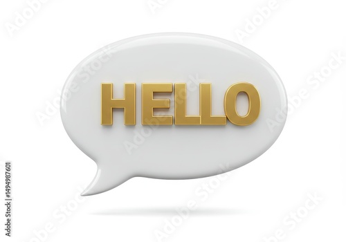 3D Illustration of Gold hello in speech bubble isolated on white background char