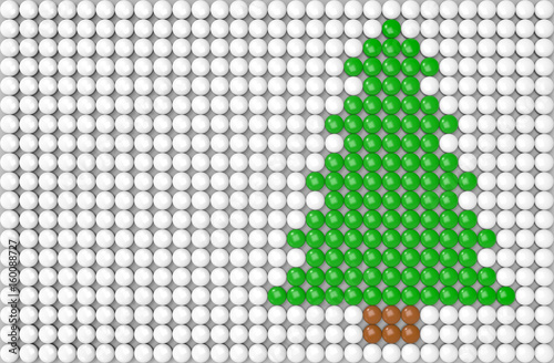 3d illustration of green chocolate candies group in the christmas tree shape surrounded by white chocolate candies