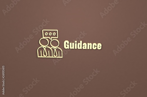 3D illustration of Guidance, yellow color and yellow text with brown background.