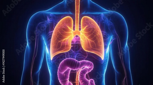 3D illustration of human body anatomy, highlighting the lungs.