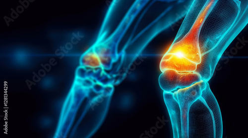 3D Illustration of Knee Joint Pain and Inflammation Highlighting Tendon Problems on a Dark Background